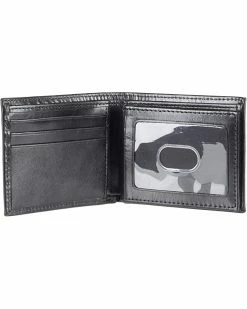 - Slim design features flip-out center section with thumb-slide ID window, 3 card pockets and side pocket. The Flip Wallet is made of leather with a leather interior and bi-fold design.